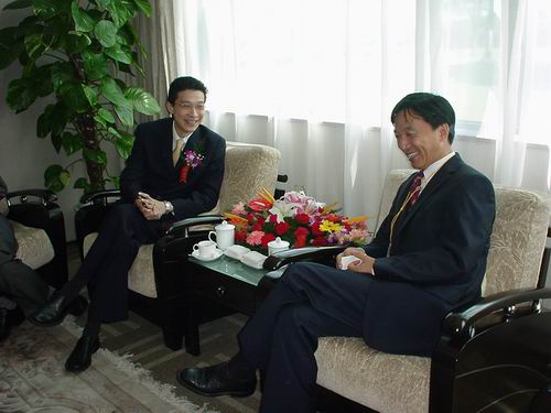 谢德强总领事(左)和夏大慰院长进行了会谈。