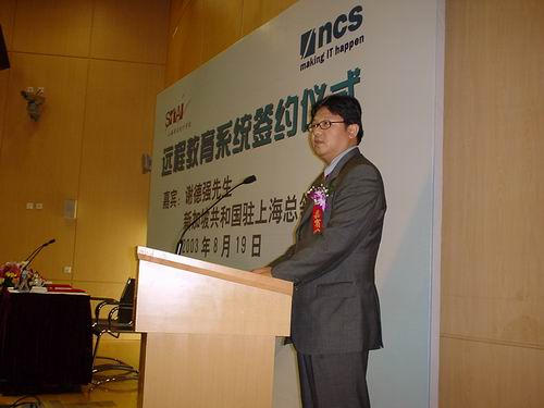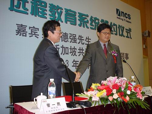 8月19日,我院与新加坡NCS公司就我院的远程教育系统举行签约仪式。新加坡共和国驻上海总领事谢德强应邀出席了签约仪式并致辞。我院管一民副院长和NCS全球业务执行董事胡以晨代表合作双方进行签约。