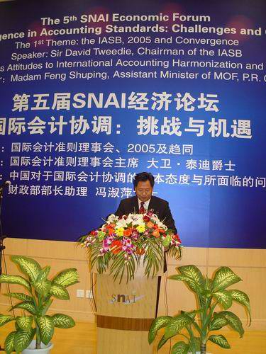 10月29日下午,第五届SNAI经济论坛在我院报告厅顺利拉开帷幕。此次论坛非常荣幸的邀请到国际会计准则理事会主席大卫·泰迪爵士和财政部冯淑萍部长助理进行主题演讲,他们分别就国际会计准则理事会面临的挑战与未来发展、中国对于国际会计协调的基本态度与所面临的问题等展开深入的探讨。财政部会计司司长刘玉廷主持论坛,我院夏大慰院长致欢迎辞。