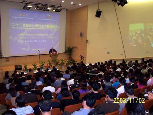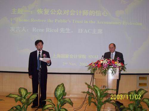 11月2日上午,国际会计师联合会主席Rene Ricol与秘书长Ian Ball在我院600人报告厅举行演讲。他们分别以“恢复公众对会计师的信心”与“国际会计师联合会运作情况”为题,重点阐述国际会计师行业最高领导机构对如何重塑公众信心的具体设想和措施建议。我院谢荣副院长主持整个演讲,并致欢迎辞。来自我院总会计师培训班、中注协和上海财经大学近500百学员参加了整个演讲。