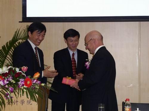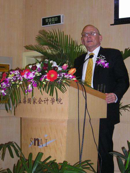 2004年2月18日上午,应我院和美国亚利桑那州立大学联合邀请,美国哈佛商学院著名教授D. Quinn Mills莅临我院,主讲第六届SNAI论坛,题目为“美国证券市场发展:问题与经验”。在3个小时的精彩演讲中,D. Quinn Mills教授就美国资本市场,尤其是风险资本市场对经济发展的作用做了精彩的论述,并就90年代以来,美国经济泡沫、证券市场泡沫产生的原因及危害与到会嘉宾做了深刻的探讨。此次论坛由我院李扣庆副院长主持,夏大慰院长在论坛结束时代表学院向D. Quinn Mills教授赠送了象征“客观、独立、公正、透明”的我院纪念品“公正柱”。我院第一期EMBA班学员,第一、第二期MPAcc班学员,第二期EMBA班申请者,第三期EMPAcc班申请者,上海证券金融业界的有关领导和专家,以及我院部分教职员工参加了此次论坛。