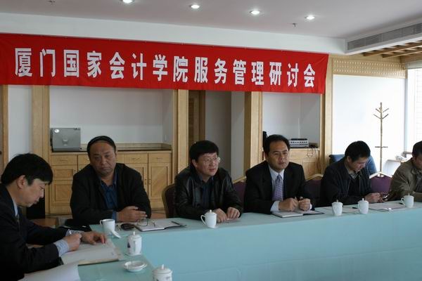 2月23日,国家会计学院服务管理研讨会在厦门南雁大酒店召开。北京、上海、厦门国家会计学院负责院办、后勤、财务、弱电工作的副院长和相关负责人参加了会议,财政部人教司邵诗利处长到会讲话。交流会上,三家学院的分管院长分别介绍了学院的基本情况,特别就学院建设和运行过程中遇到的问题进行了深入的探讨。三家学院的对口部门也进行了交流和恳谈。会议一致认为,三家国家会计学院是兄弟单位,必须团结协作,取长补短、共同发展。会议还达成了建立长效沟通机制、统一学员接待标准等共识。