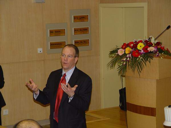 3月20日,应我院和美国亚利桑那州立大学联合邀请,芝加哥Griffin Kubik Stephens & Thompson投资公司首席经济学家布莱恩·S·韦斯伯利(Brian S. Wesbury)先生莅临我院,为EMBA、MPAcc学员就“新时代经济”话题进行专题讲座。在两个多小时的演讲中,韦斯伯利先生阐述了美国经济、货币政策及货币政策对美国、中国经济的影响。他认为,由于中国的汇率制度是固定汇率制度,且钉住美元,所以,中国经济就不可避免的要受到美国货币政策影响。目前人民币的升值压力不是来自于贸易,而是来自于美国的货币政策。韦斯伯利的精彩演讲和独特观点赢得了学员的热烈欢迎和掌声,他们与韦斯伯利先生展开了热烈讨论。演讲结束后,韦斯伯利先生还赠与每位学员自己的专著《财富新时代--投资者如何从未来经济的五大趋势中获利》,并签名留念。本次讲座由美国亚利桑那州立大学凯瑞商学院贝克伟副院长主持,我院李扣庆副院长也出席了本次讲座。