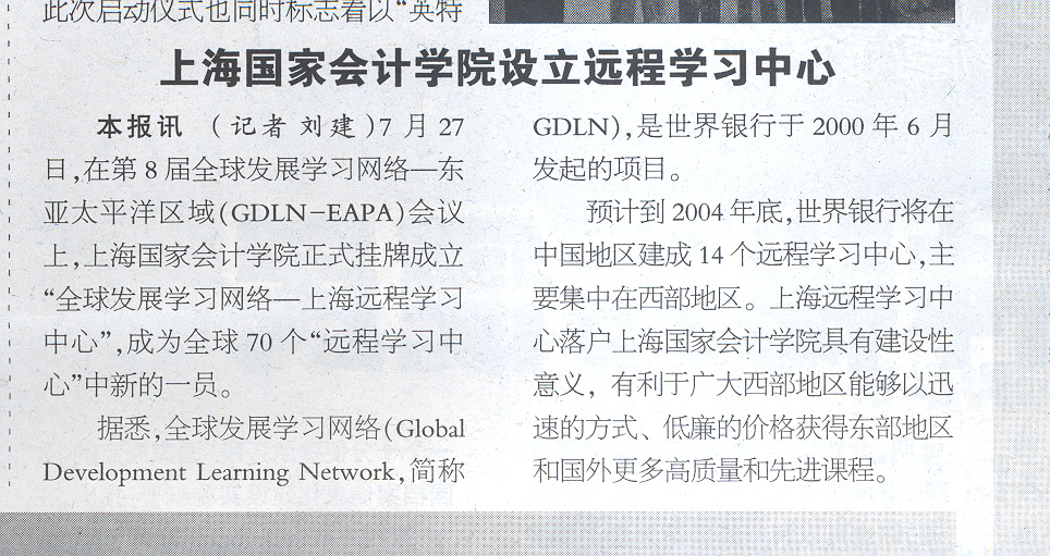 《计算机世界》:上海国家会计学院设立远程学习中心