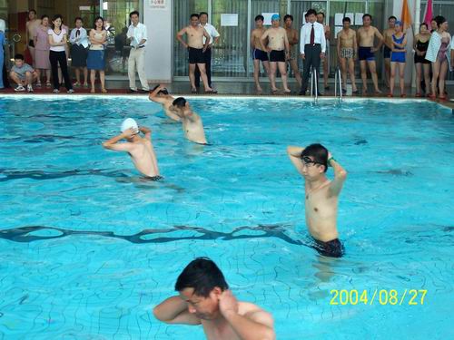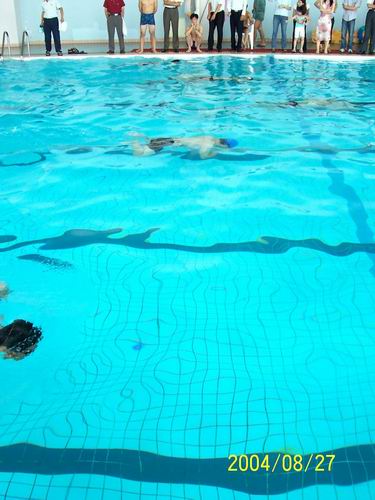 其后举行了水中漫步、男子100M竞泳、女子50M竞泳、潜水、25M*4接力赛等项目的决赛,运动员个个如同水中蛟龙,奋勇搏击,竭尽全力的争取最佳成绩。