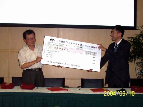 随后,李扣庆副院长宣读了我院2004年先进工作者名单,共有27位员工获此殊荣,兴业银行上海分行王沪军副行长和我院四位院领导共同为获奖的员工颁发了证书,并赠送了鲜花。现场一片花团锦簇,气氛热烈。