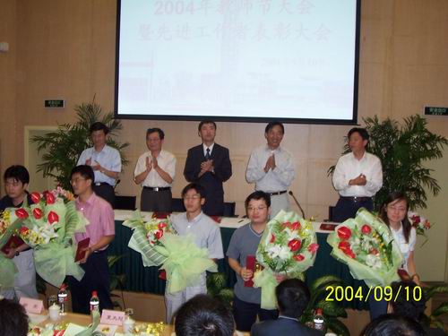 2004年9月10日下午,我院召开了教师节庆祝大会暨先进工作者表彰大会,全院100余名员工欢聚一堂,庆祝大家共同的节日。会议由管一民副院长主持。