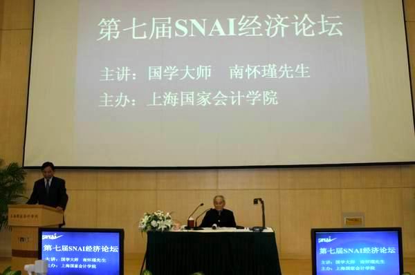 (通讯员:赵健)10月23日下午,第七届SNAI经济论坛举行之际,学院600人报告厅座无虚席,过道上都挤满了人。大家为聆听国学大师南怀瑾先生的演讲齐聚一堂。夏大慰院长代表学院和在座的学员和嘉宾致欢迎词。他表示上海国家会计学院一直非常注重高级经济管理人才的培养。在日常的培训中,不仅注重提高学员的专业技能,还希望能够提升专业人士的职业操守与个人素养。通过SNAI经济论坛这一交流的平台,学员们能够博采众长,获取信息,从而能百尺竿头,更进一步。这次能邀请到一代宗师南怀瑾先生主讲,对论坛本身来说,拓宽了研讨的学科范畴,是一次大大的突破。对学员来说,有这样贤师智者,口耳相传,是难能可贵的机会。