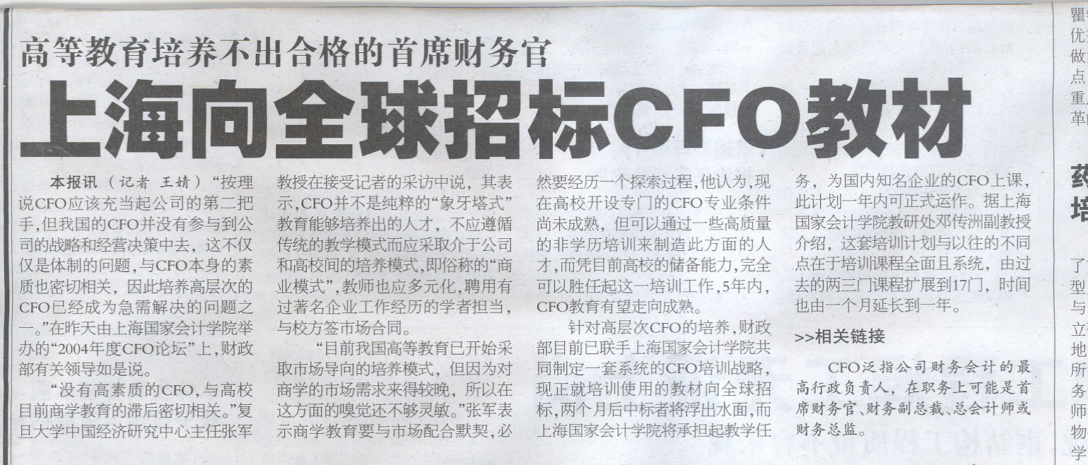 《青年报》:上海国家会计学院向全球招标CFO教材