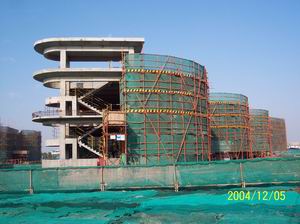 专家楼位于二期基地南端,建筑面积1668.88m2。专家楼是整个工程中进度最快的单体,3月13日完成基础桩(112根);6月2日完成基础工程;8月13日完成五层框架结构封顶(平均14天一层);10月13日完成内外墙砌筑;单体结构10月26日通过内部验收;11月2日通过市质检站验收。外墙粉饰工程于12月1日完成。现正进行外墙防水涂料施工。