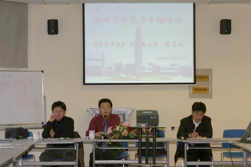 陈主任首先站在一个记者的角度,由最基本的新闻概念谈起,运用了大量实例来阐述好新闻的标准以及新闻写作的一般要求等,深入浅出,令人印象深刻。之后,陈主任又从办报机构以及编辑人的角度,结合《东方早报》实例,谈了报纸的定位、运作和经营。最后,陈主任的助手《东方早报》资深编辑顾为荣针对我院的网站新闻进行了点评。讲座持续了两个小时。大家听后普遍表示颇有感触、获益匪浅。结束后,部分员工还向两位老师请教了许多有关新闻写作和媒体运作方面的问题。