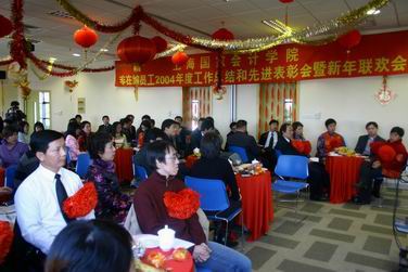 随后进行了上海国家会计学院2004年度非在编系列先进员工表彰活动。行政财务部周琦副部长宣读了表彰决定,李副院长与信息部刘勤部长为姚菁等10名非在编先进员工颁发了荣誉证书。车队俞国和师傅作为先进员工的代表在会上发言。总结会在热烈的掌声中结束。接下来开始举行一年一度的新年联欢会。非在编员工自行组织、自编、自演了7个节目。车队师傅们抛砖引玉,献演了豪迈的《游击队之歌》,他们精彩的演出调动了全场的气氛;教学支持中心自编的“三句半”三言两语间展现出丰富的诙谐幽默,赢得了满堂喝彩;时枫的个人独唱《我心中的故事》,完全体现出了专业水准,全场为之一振,前台员工的大合唱《明天会更好》将联欢会推向高潮。此外,活动中还穿插了抽奖和游戏。整个活动持续了近2个半小时。(编辑/荣梅)