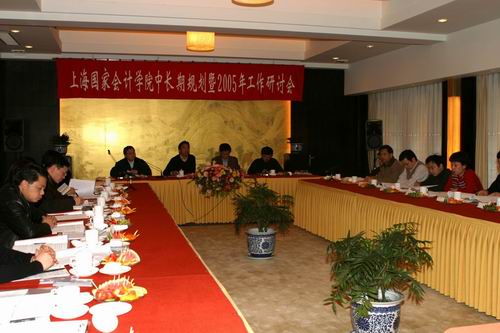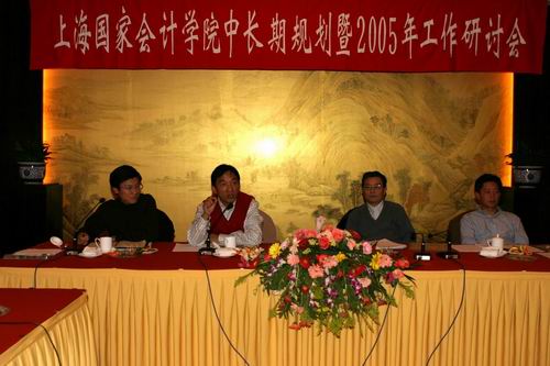 夏大慰院长首先介绍了本次会议的安排,他指出学院希望借此次研讨会的举办,理清发展思路,明确发展方向,从而为学院事业的发展壮大奠定基础。随后,李扣庆副院长详细解读了《上海国家会计学院中长期发展规划(初稿)》和《上海国家会计学院2005年工作要点(初稿)》两份材料,希望与会者认真研读,提出中肯的意见和建议,为学院的健康发展出谋划策。管一民副院长则就学院2005年的财务预算情况及收支指标设想作了介绍,使各部门能更好地把握05年学院经费整体情况,做好完成各项指标的思想和行动准备。会议由谢荣副院长主持。