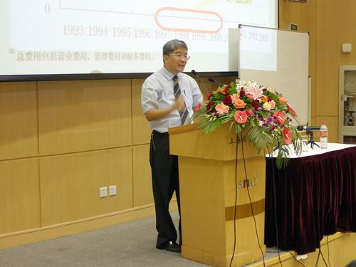 在授课过程中郎咸平教授表现出了他一贯的风格:诙谐幽默, 激情饱满, 极富感染力。尤其当他在谈到长虹, 宇通和格林柯尔时, 对这些公司在进行管理层收购过程中存在的国有资产流失的潜在问题给予了极大关注。通过对三家公司管理层收购前后数年财务报表对比, 他发现三家公司都存在一定程度上的盈余管理问题。公司会计报表中多项可控制减值准备项目在MBO(管理层收购)前后发生异常波动, 并且这些波动有利于管理层在MBO过程中谋求自身利益最大化, 从而不能排除管理层大幅压低国有资产价值, 贱价收购国有资产的可能, 这最终将造成国有资产的大量流失。郎教授一再强调当前我国改革过程中所面临的不是简单的产权问题, 因此也不是简单的私有化就能解决的问题。他认为在存在信托责任的缺失, 缺乏完善法律规范情况下, 一味的强调产权改革只会财富加速向少数人手中集中, 导致社会分配不公, 从而影响社会稳定和经济的长期健康发展。所以他提出政府应该通过严格执行法律规章, 对各种经济行为加以规范, 提高参与市场竞争企业和个人的违法、违规成本,建立公平、统一、规范的市场经济环境。