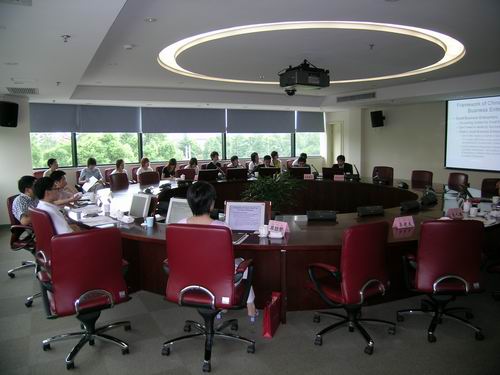 会上,长崎大学副校长須齋教授首先作了“在香港、韩国和日本股票和外汇市场上的波动性溢出结构”的主题报告。其后,我院郭永清老师就“中国会计制度改革历程和最新动向”、单喆慜老师就“证券市场财务分析实务”等主题作了报告。与会的中外老师就上述三个论题还进行了认真而深入地探讨。
