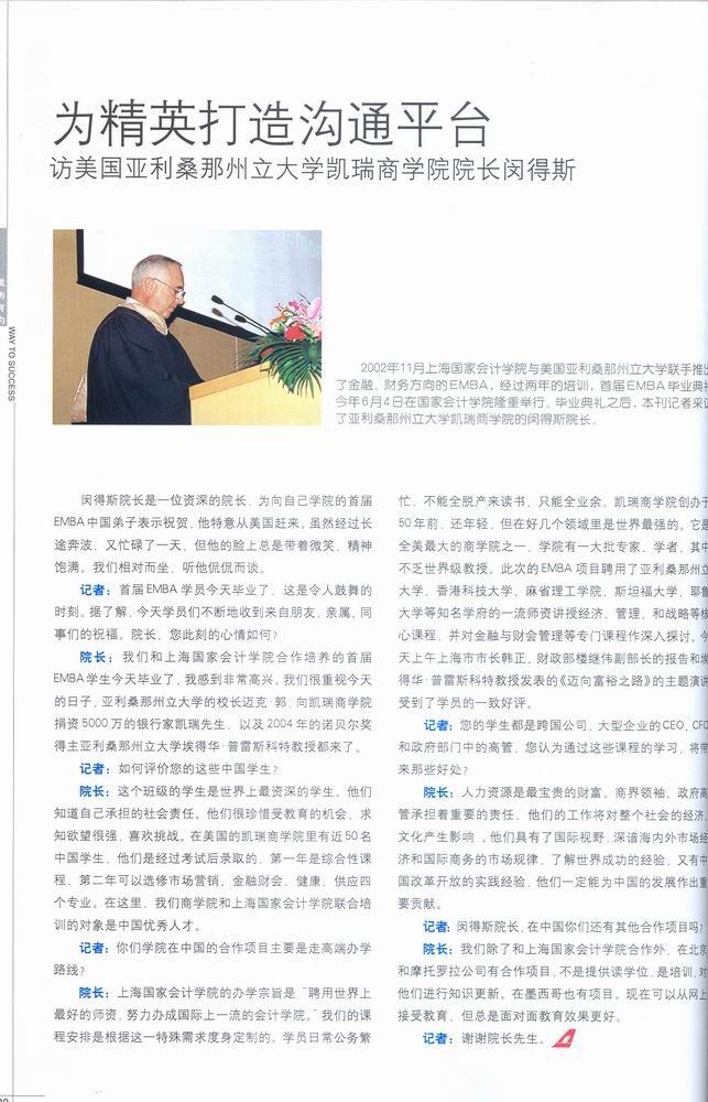 《上海航空》:为精英打造沟通平台——访美国亚利桑那州立大学凯瑞尚学院院长闵得斯