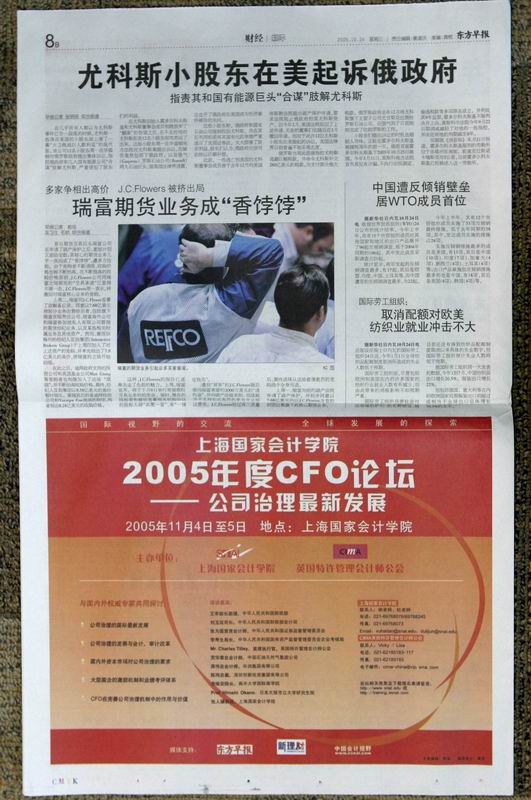 2005年度CFO论坛第三次广告 《东方早报》 财经版8版 10月26日
