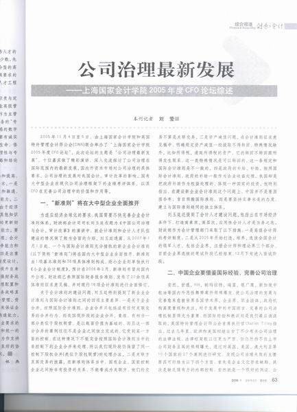 《财务与会计》2006年第一期 :公司治理最新发展--上海国家会计学院2005年度CFO论坛综述