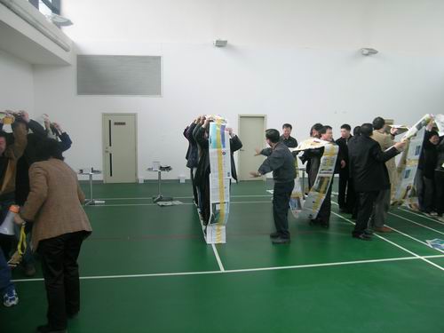 举杯祝福,畅叙同学情谊的圆桌酒会首先拉开了活动的序幕。酒会由上海雪马咨询公司总经理陈旻同学主持,这位首席快乐官(CHO)充分发挥了个人的表演才能,极大调动了同学们的参与热情,现场气氛非常热烈。成语接龙、Copy不走样、才艺展示等游戏,将活动推向一个又一个高潮。大家充分运用课程所学知识,将成本战略、外包等专业术语融入到游戏的言语对白中,让人会心一笑。上海市财政监察专员办公室副监察专员杜悦妹同学清唱一首民歌《香格里拉》把大家的思绪带到了遥远的云南。穿插其中的抽奖活动,也为活动增色不少。最后,大家兴致勃勃地参加了坦克兵团游戏,折报纸,粘胶带,摹仿坦克开动,忙得不亦乐乎,现场洋溢着欢声笑语。