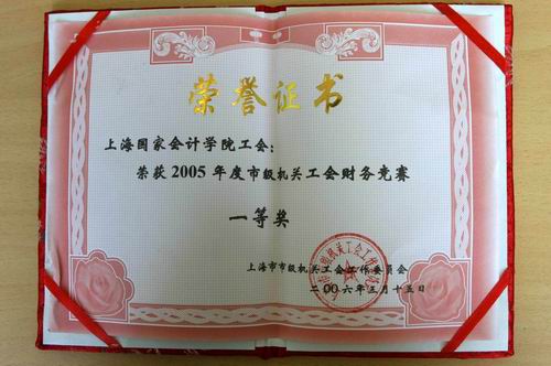 我院荣获2005年度“上海市级机关工会财务竞赛”一等奖(图)