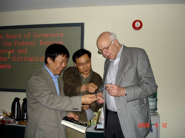 沃尔克先生与李扣庆副院长、原世界银行驻北京代表处副代表胡长焘等合影