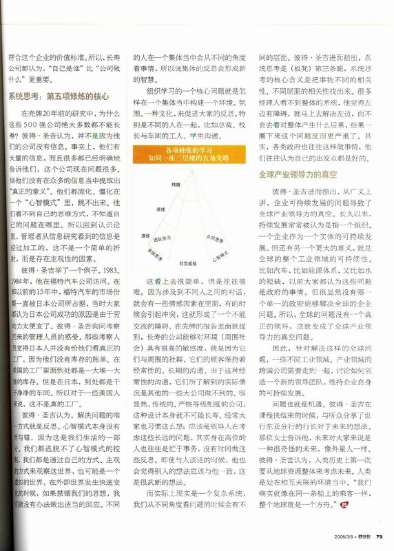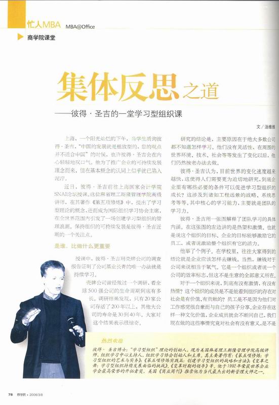 《商学院》2006年3月号:集体反思之道--彼得圣吉的一堂学习型组织课