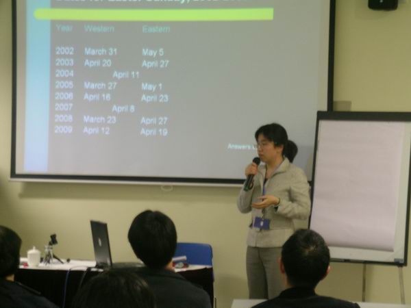 (通讯员、摄影:丁道勇)4月15日,我院成功举办了首次“英语沙龙”活动。本次活动由市场发展部仰磊老师主持,吸引了我院MPAcc项目2005级、2006级的学员参加。我院AFDC张珂老师给大家介绍了以英语为母语的国家庆祝复活节的一些风俗习惯、轶闻趣事。市场发展部汤超义老师,应邀给与会学员现身说法,介绍了自己学习英语的成功经验。最后,仰磊老师介绍了写作英语电子邮件的一些常识。