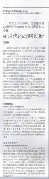 随着产品技术的不断创新,企业间分工沿着国际空间维度不断深化,e时代的企业战略创新离不开信息技术。