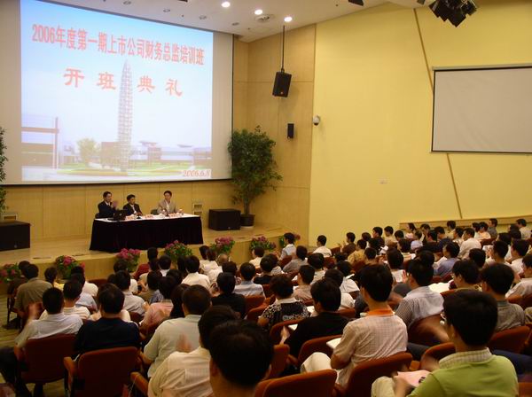 中国证监会上市公司部、上海证券交易所和我院强强联手,共同举办的第一期上市公司财务总监培训班6月8日在我院顺利开班。共有来自全国各地180多家上市公司近210位的财务总监参加了本期培训班。8日上午举行了开班典礼,由上海证券交易所上市部培训中心李大沛主任主持。中国证监会上市部童道驰副主任、谢荣副院长出席了开班典礼。