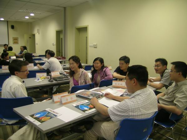 Kelly先生长期从事英语口语教育,Kelly先生以丰富多样的教学方式和热情洋溢的授课态度,掀起了一个又一个教学互动的高潮,营造了缤纷五彩的沙龙夜。现场没有翻译,刻意营造一个全真的英语环境。刚开始,学员们非常迷惘,但渐渐地,便浮现出心领神会的神情,不多时,学员们一改拘谨的态度,积极的相互交流,课室一片欢声笑语,场面甚是热烈。