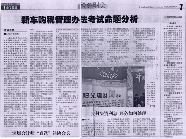 本报拟推出考试天地栏目,关注并报道注册会计师、注册税务师考试相关动态、辅导信息等,为广大考生提供帮助。本文作者供职于上海国家会计学院,长期负责财经法规与诸类考试的信息收集、整理与分析工作;参与编写了2005年度注册会计师考试税法答疑精华的编写工作,负责流转税部分;编写注册会计师考试税法模拟题两套,分别在经济科学出版社和《财会通讯》杂志发表。