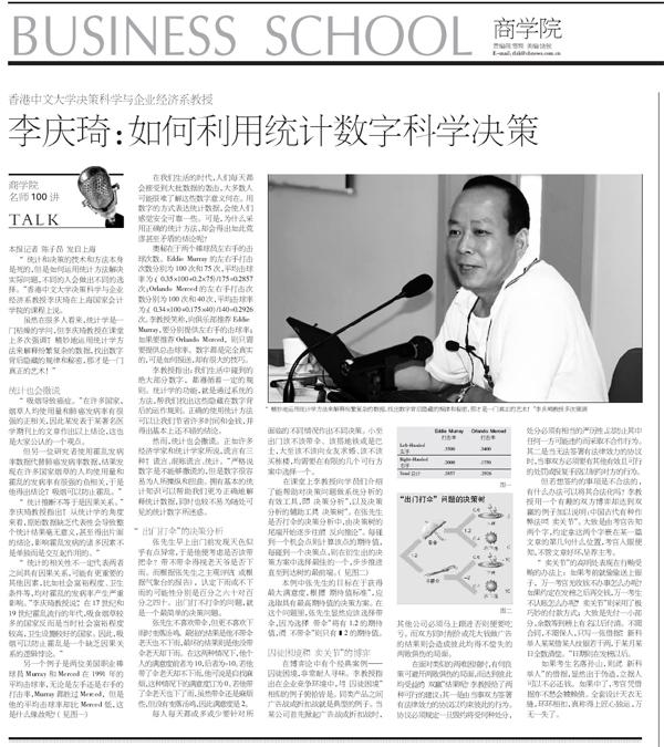 “统计和决策的技术和方法本身是死的,但是如何运用统计方法解决实际问题,不同的人会做出不同的选择。”香港中文大学决策科学与企业经济系教授李庆琦在上海国家会计学院的课程上说。