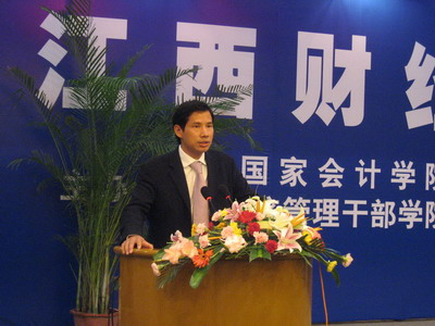 财政部王军副部长首先代表财政部及金人庆部长向江西省国有企业财务管理领军人才培训工程的启动表示热烈的祝贺,并感谢江西省委、省政府对财政工作以及对会计行业发展的重视和关心。王部长指出,江西省在财政部启动培训会计领军人才的培训班之后,率先在全省范围内实施高级会计人才培训的战略,培养打造江西大中型国有企业的CFO,这对振兴江西会计行业,发展江西财政事业,进而促进江西经济社会的发展都具有重要的意义,对完善和发展全国高级会计人才培育机制也具有重要的促进作用。王部长主要从以下三个方面就全国会计领军人才培养的重要性、战略规划、培养机制创新、学习方法创新等发表了重要讲话。