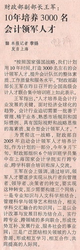 《国际金融报》 2006-09-22:10年培养3000名会计领军人才