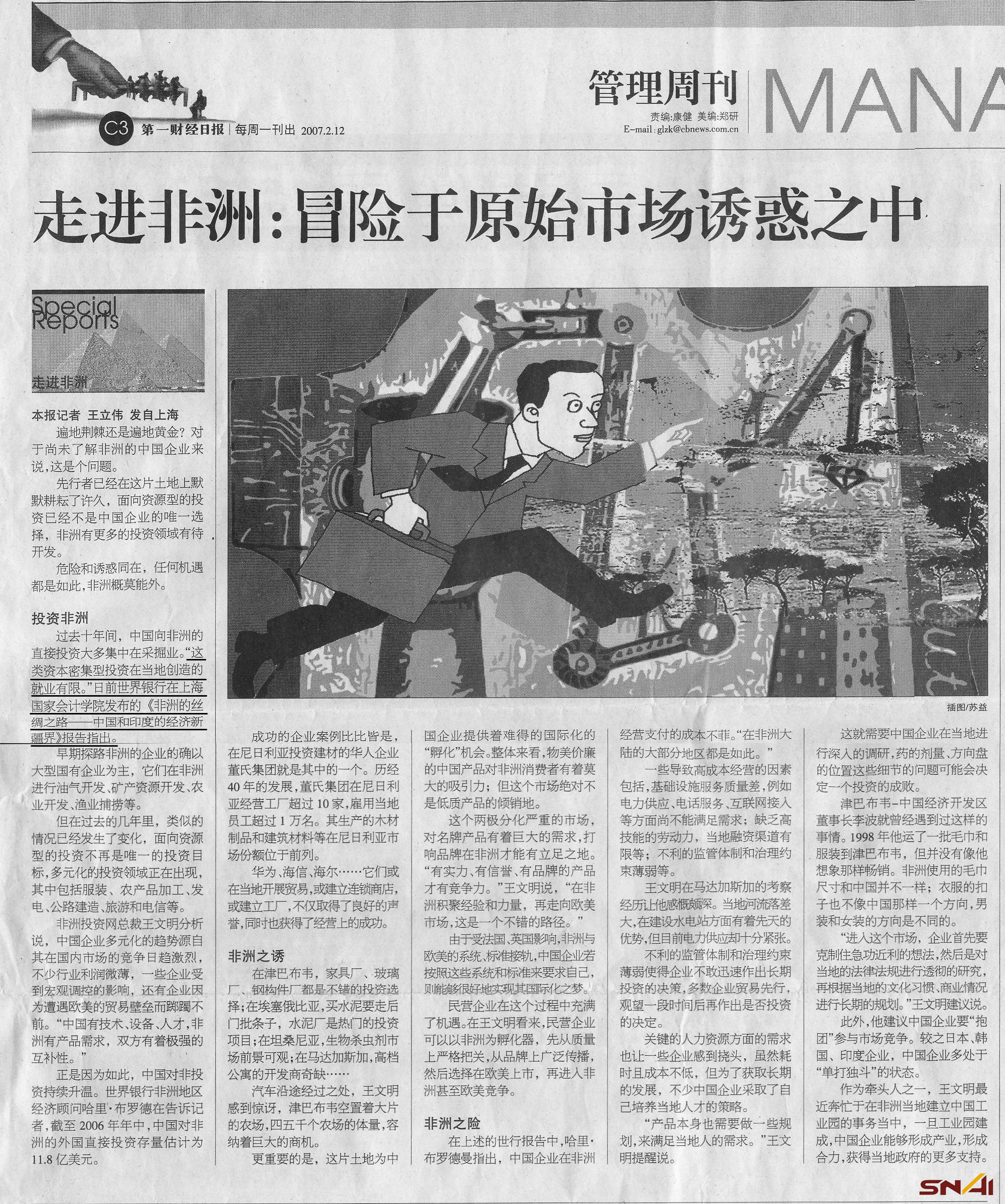 这个两极分化严重的市场,对名牌产品有着巨大的需求,打响品牌在非洲才能有立足之地。“有实力、有信誉、有品牌的产品才有竞争力。”王文明说, “在非洲积聚经验和力量,再走向欧美市场,这是一个不错的路径。”