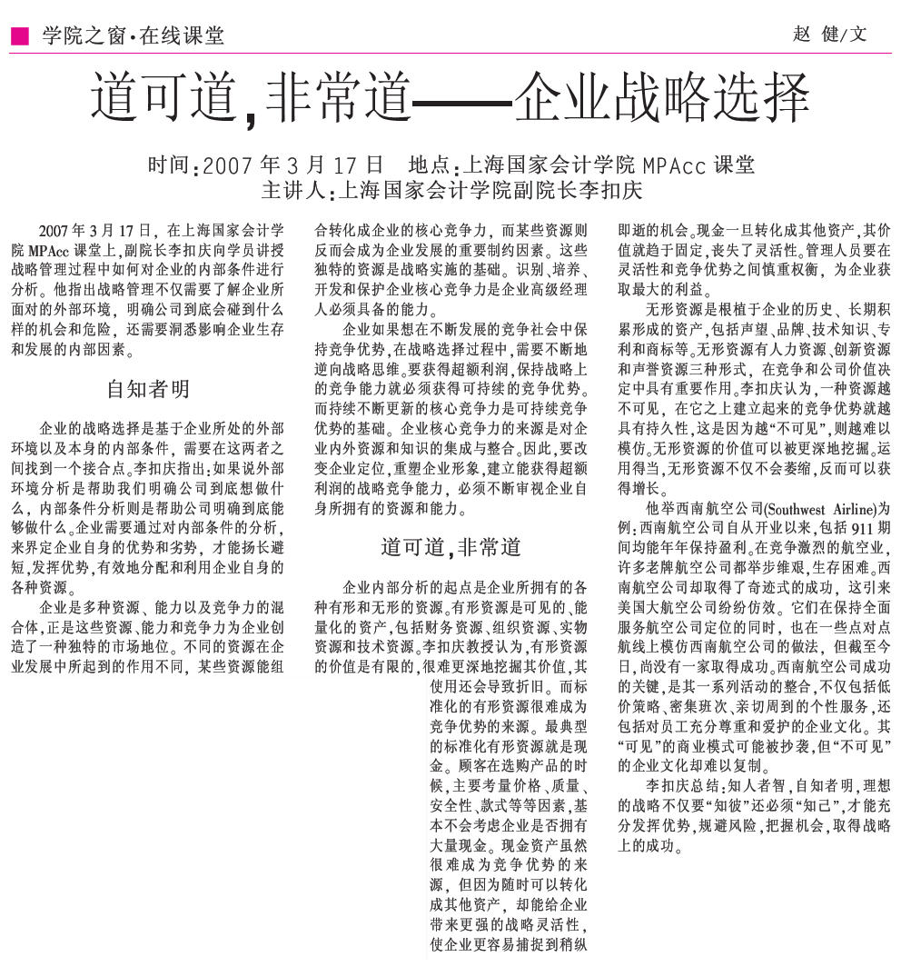 《中国财经报》2007年4月6日:道可道,非常道——企业战略选择