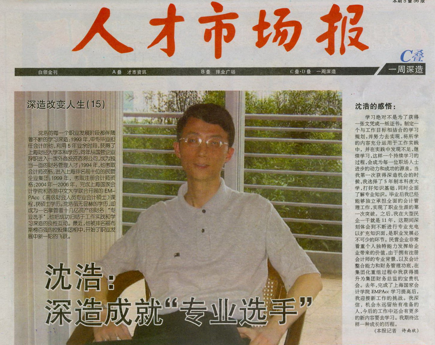 《人才市场报》2007年5月8日:沈浩:深造成就“专业选手”