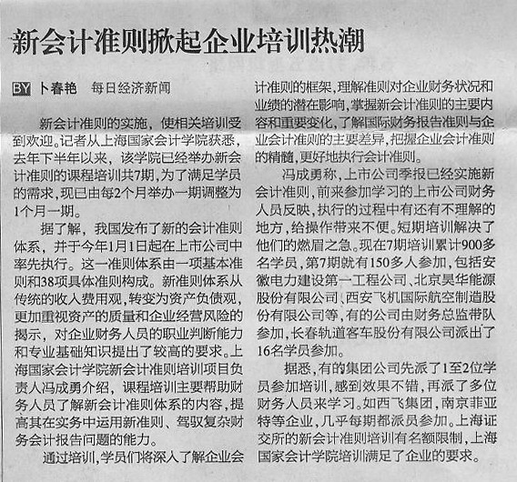 据悉,有的集团公司先派了1至2位学员参加培训,感到效果不错,再派了多位财务人员来学习。如西飞集团,南京菲亚特等企业,几乎每期都派员参加。上海证交所的新会计准则培训有名额限制,上海国家会计学院培训满足了企业的要求。
