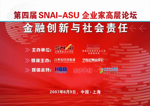 (通讯员:李泓)6月9日,学院将举办“金融创新与社会责任”为主题的SNAI经济论坛,中美金融界人士及相关专家将参加。中国人民银行副行长吴晓灵、中国证监会主席助理姜洋、中国银监会主席助理王华庆将参会并发表主题演讲。