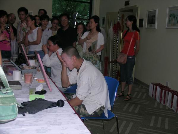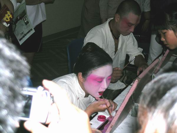 此外,在讲座开始前上海京剧院演员在600人报告厅外现场公开化妆以及道具展示,让观众亲密接触京剧演员的上妆和脸谱勾勒,观众们甚至可以亲自手持刀戟过一把十八般兵器的瘾。(编辑:李泓)