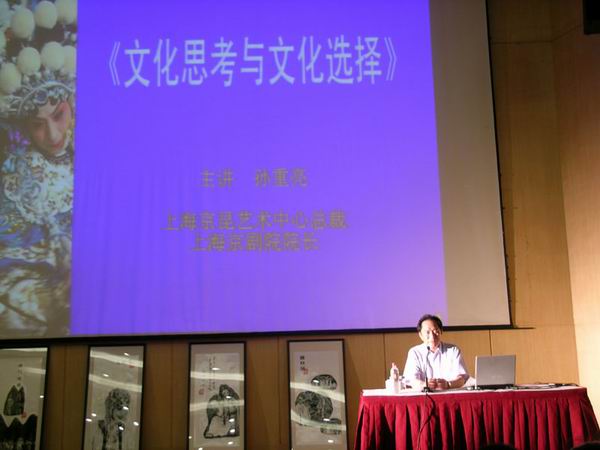 上海京剧院院长、国家一级导演、京昆艺术中心的总裁孙重亮先生非常重视本次上海京剧院走近上海国家会计学院的京剧讲座,在百忙之中他亲自赶到学院,在黎中城先生讲座前,孙重亮先生做了约50分钟关于“文化思考与文化选择”主题讲座。他的讲座极具震撼力,引领着观众对于当下中国的文化状况进行深度思考。
