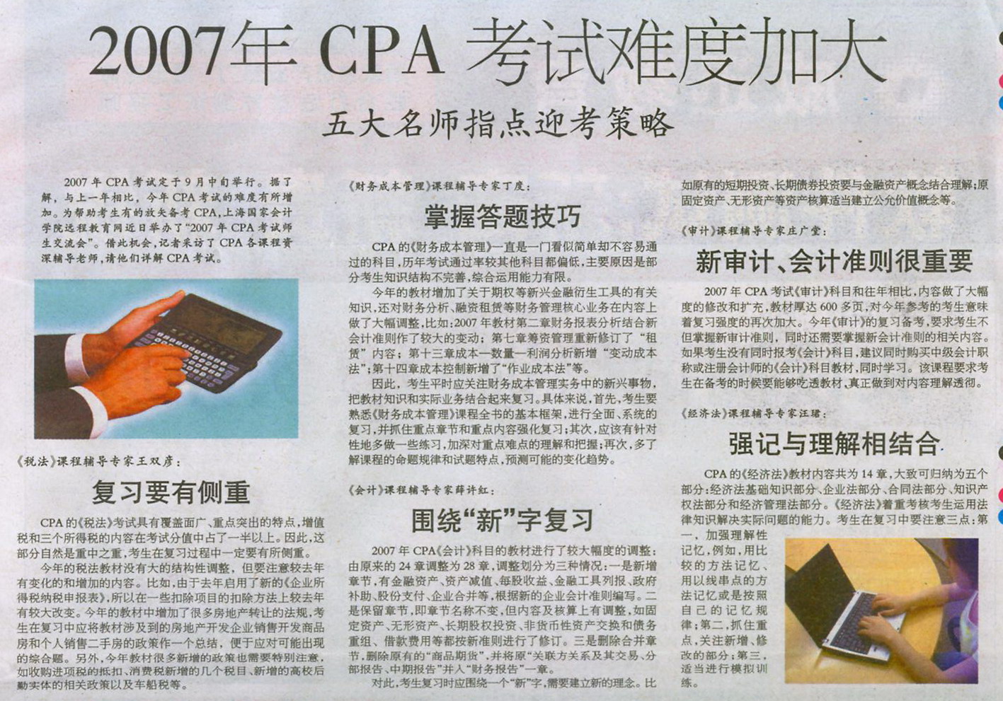 《人才市场报》2007年6月26日:2007年CPA考试难度加大 五大名师指点迎考策略