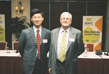 Dr Li Kouqing, Deputy-Director General, Asia-Pacific Finance and Development Centre, Shanghai, and Mr Ken Waller, Director, Melbourne APEC Finance Centre at Monash University.