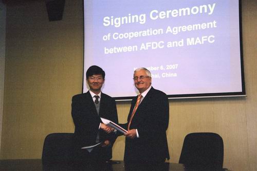 (通讯员:陈宝莲)11月6日,澳大利亚墨尔本APEC金融中心(MAFC)主任Ken Waller先生及项目执行经理Jaime Jobson先生访问亚太财经与发展中心,并与中心就未来五年在金融领域能力建设方面的合作达成合作协议,Ken Waller先生与李扣庆副主任分别代表双方在合作协议上签字。其后,在中心的彭润中博士等陪同下,Waller先生一行走访了财政部、发改委等政府部门,并邀请参加7月份墨尔本对话会的政府部门和银行界人士进行了座谈。