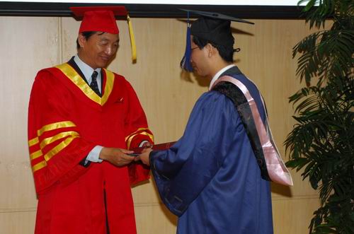 随后举行了隆重的学位授予仪式。在庄严的乐曲声中,我院夏大慰院长亲自向每位毕业生授予会计硕士学位证书,同时为每位毕业生颁发上海国家会计学院CFO资格培训证书,并与每位毕业生亲切合影。