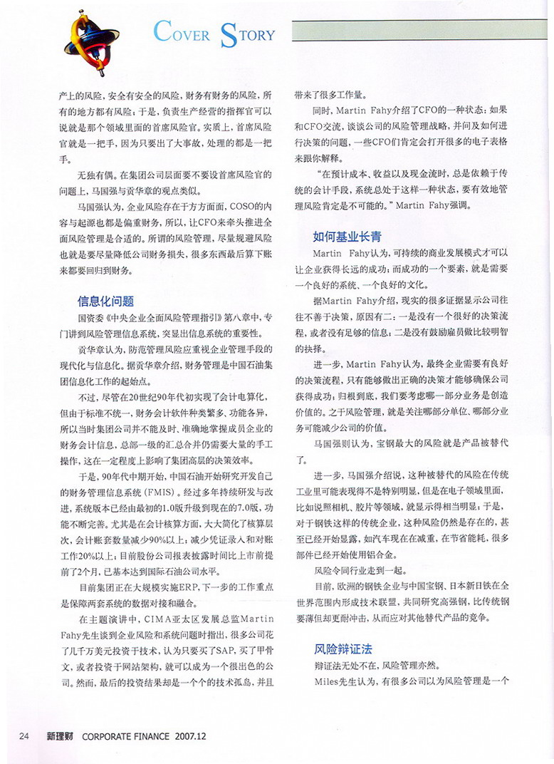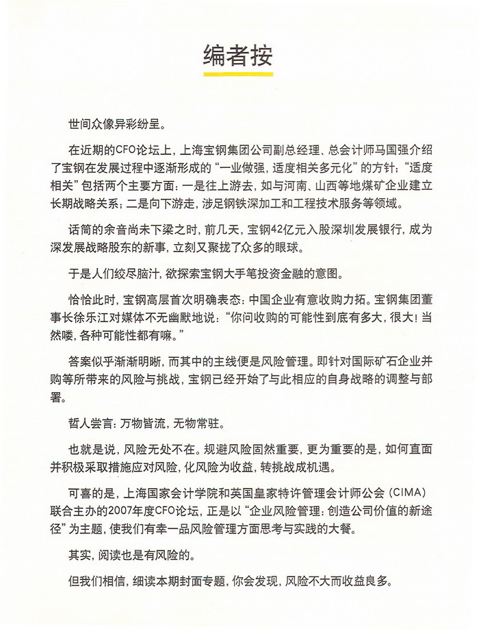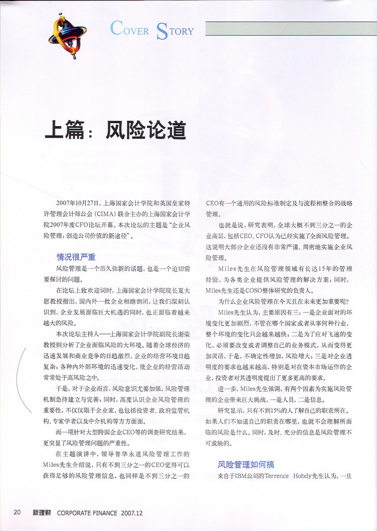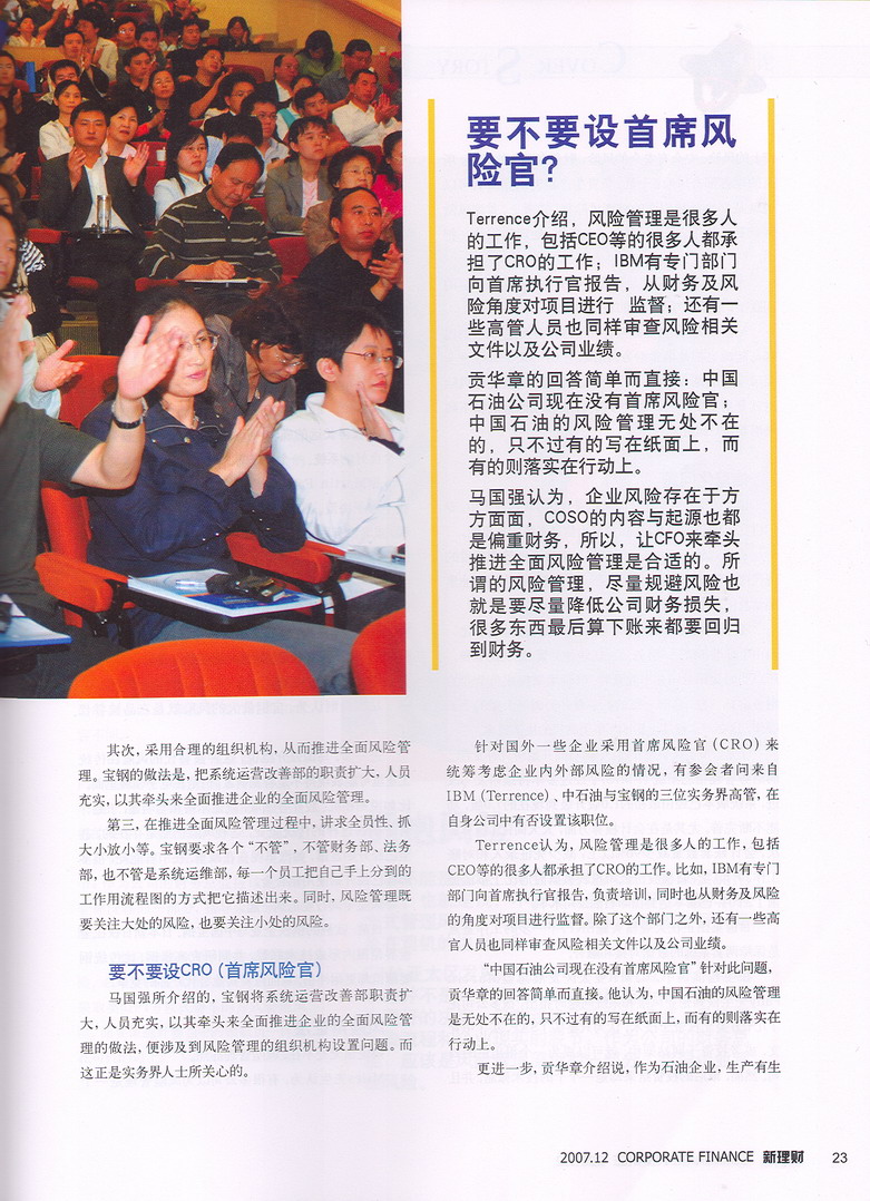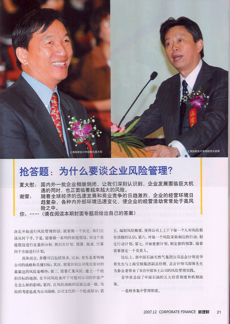 《新理财》2007年12月:风险论——上海国家会计学院2007年度CFO论坛精粹:风险论道