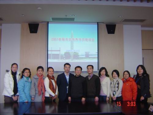 与会人员合影(左4:高会项目负责人薛许红老师,左5:上海国家会计学院远程教育部尹成彦主任,左6:高会优秀学员赵成毛,左7:高会优秀学员李福军)
