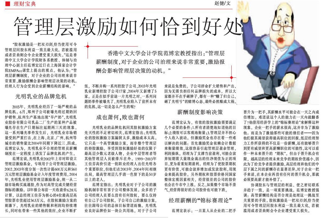 《中国财经报》2008年4月4日:管理层激励如何恰到好处
