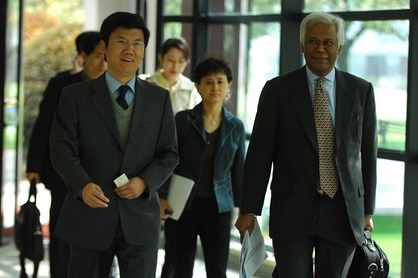((通讯员:王颖)4月10日,由亚太财经与发展中心(AFDC)主办的“治理与控制:全球经济的战略需要”主题报告会在上海国家会计学院六百人报告厅举行。世界银行副行长法耶泽尔?乔杜里先生应邀做精彩演讲。上海国家会计学院总会班和EMBA、EMPAcc、MPacc等学位项目的300多位学员在上海现场聆听演讲,北京国家开发银行银行政策研究室、金融研究发展中心、营运中心、教育培训局的相关代表,以及远在中国西部重庆工商大学的学生代表50多人,利用全球发展学习网络(GDLN)远程连接在一起,实时参与了乔杜里先生的精彩演讲与互动解答的全过程。