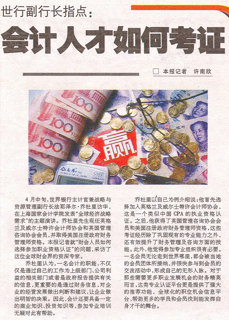 《人才市场报》2008年5月6日:会计人才如何考证